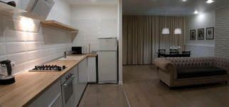 | Примечание | Комфортное проживание для отдыха. Апартаменты укомплектованы качественной мебелью, бытовой техникой и хорошей сантехникой. Витражные окна, натяжные потолки. Для удобства гостей большой ТВ с просмотром спутниковых каналов НТВ+, бесплатный WI-FI. Для спокойного отдыха и сна в спальне двуспальная кровать шир 180 см, кондиционер, ковровое покрытие.Спокойную атмосферу апартаментов дополняют качественные ортопедические матрасы и постельное белье высокого качества, что позволяет чувствовать себя как дома. Прихожая. Санузел, гостиная и кухня с теплыми полами. Кухня-студия, совмещена с гостиной. Микроволновая печь, эл. чайник, холодильник, вытяжка, газ. плита, стир. машина-автомат, утюг, столовые приборы и принадлежности. Душ, комплект полотенец, косметические принадлежности, гигиенический душ, полотенце сушитель. S общая=55 м2. H=2,8м; Частная территория и эко-парковка. | ||