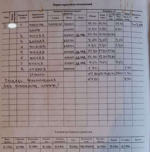 | Примечание | Общий метраж 70 кв.м., кухня 10 м2, комнаты 11, 17 и 13 м2, есть застекленный балкон. 5/9 этаж. Высота потолка 2,55м. Раздельный санузел. Вид из окон: во двор и на улицу. Отопление — центральное. Улучшенная входная дверь. Отделка: пол- ламинат, линолеум, плитка в ванной и санузле. Стены обои. Мебель, кухня остаются. В комнате и зале сделан свежий ремонт. После этого никто не жил. |