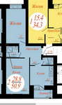 | Площадь, м 2 | 51/30/8 |