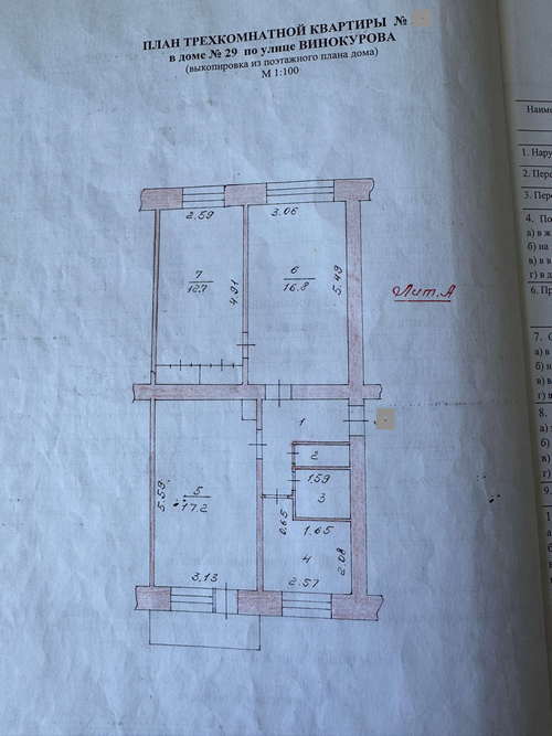 | Примечание | Общий метраж 63 кв.м., кухня 6 м2, комнаты 17,2, 16,8 м2 и 12,7 м2, есть застекленный балкон. Шкаф 1,9 м2. Санузел раздельный. 5/5 этаж. Без лифта. Вид из окон: во двор и на улицу. |